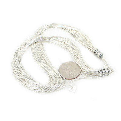 Featuring our ever-popular sterling liquid silver necklace made of 30 strands with sterling barrel cones.