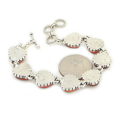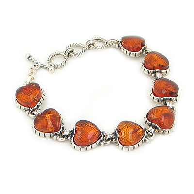 Featuring a beautiful .925 sterling silver hearts link bracelet set with Gorgeous 12mm Amber stones.