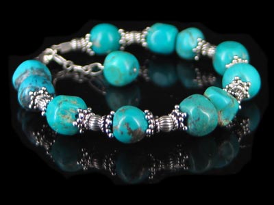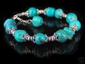 Featuring a beautiful 1 strand genuine high quality 10 mm blue turquoise stone bracelet with sterling silver crown findings. This bracelet has a length of 7.5" - 8.5" with sterling lobster clasp.