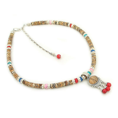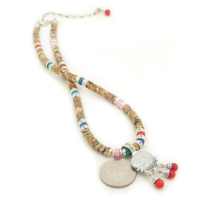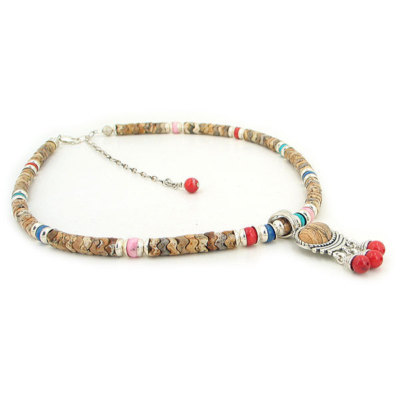 Featuring a gorgeous 1 strand Picture Jasper Crown necklace decorated with sterling silver, turquoise, coral, lapis, rhodochrosite beads.