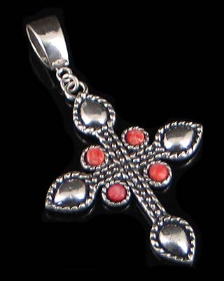 Item Description: Retail Price: $34.99 Featuring a handcrafted .925 sterling silver cross pendant with bezel set genuine 3mm red coral studs. This bail type pendant has a length of 45 mm and a width of 22 mm.Good Luck and Happy Bidding! For more details please, see box above our company logo.