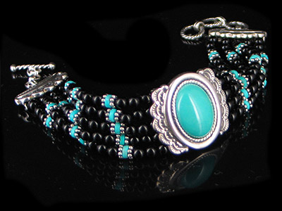 Stone: 4mm Onxy, 4mm Kingman Turquoise, 13x18mm Kingman Turquoise Cabachon.