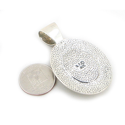 Length: 2-7/16" (62mm) Width: 1-7/16" (36mm) Metal: .925 Sterling Silver Bail: Fits up to 10mm Stone: 18x24mm Lapis Stone