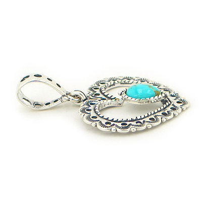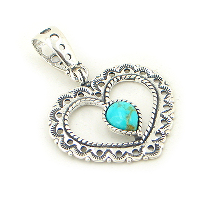 Featuring a gorgeous handcrafted .925 sterling silver ruffled heart pendant, set with a genuine Kingman Turquoise stone.