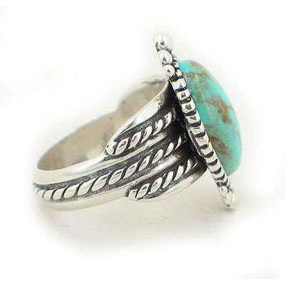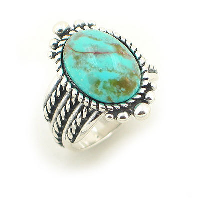 Width: 5/8" (22mm) Metal: .925 Sterling Silver Size: 6 Stone: 10x14mm Kingman Turquoise Oval