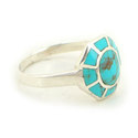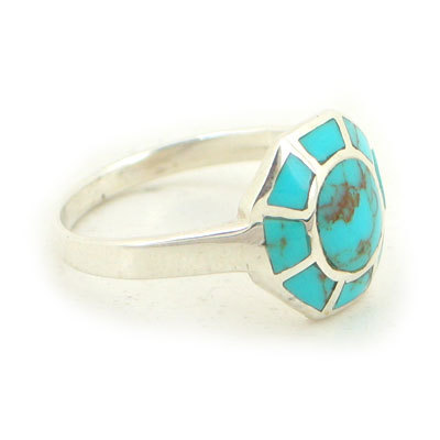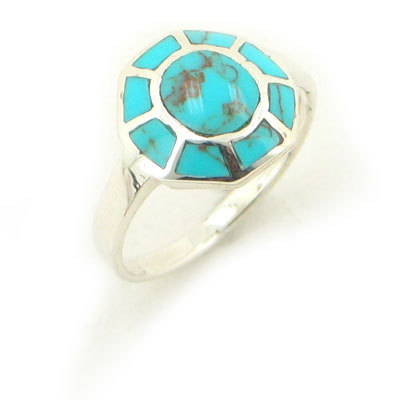 Featuring our sterling silver turtuoise shell ring precision inlaid with Kingman Turquoise stones.