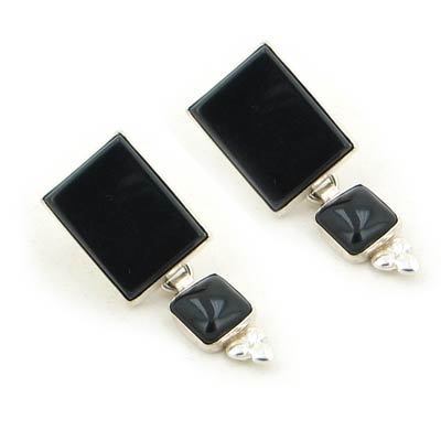 Length: 5/8" (16mm) Width: 1/2" (12mm) Clasp: Post Metal: .925 Sterling Silver Stone: 12x16mm Onyx Rectangle, 8mm Onyx Square