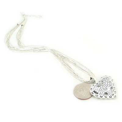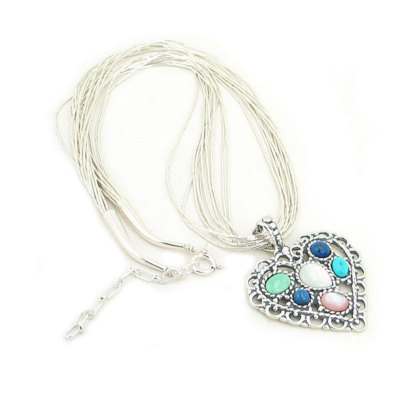 Featuring a classic 10 strand liquid sterling silver necklace with a gorgeous multi-gemstone Confettie Heart Pendant.