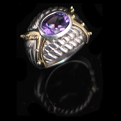 Item Description: This is the only one! Featuring men's two-tone .925 sterling silver & 14k gold pinky ring. It has a width of 16 mm and features a gorgeous 9 x 7 mm amethyst oval. For more details please, see box above our company logo.