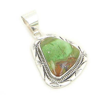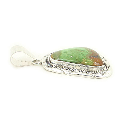 Featuring a beautiful freeform genuine green turquoise pendant, Native American handcrafted in sterling silver.