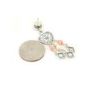 Featuring a pair of handcrafted sterling silver heart dangle earrings with metalworking texture. Each earrings has 3 dangles with genuine pink coral and freshwater pearl beads.