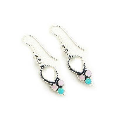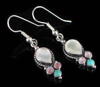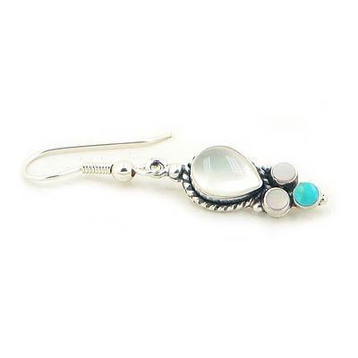 Stone: 7x9mm White Mother of Pearl Pear, 3mm Pink Mother of Pearl Rounds, 3mm Kingman Turquoise Rounds