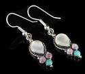 Featuring a cute pair of .925 sterling silver caviar bead earrings, bezel set with genuine Kingman TUrquoise, pink & white mother of pearl stones.