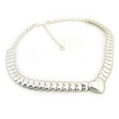 Featuring a gorgeous necklace formerly featured on QVC. This necklace is made of .925 sterling silver hearts and beads with an extra larger heart centerpiece.