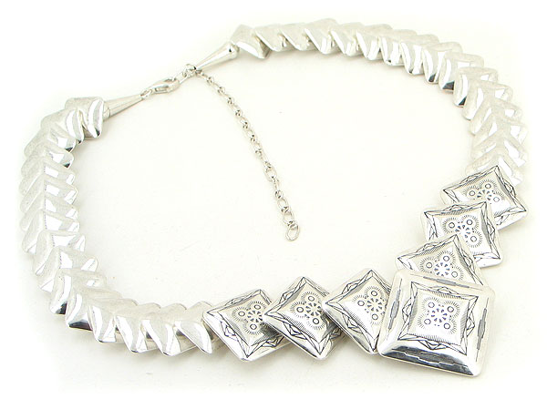 Featuring a beautiful handcrafted .925 sterling silver square link necklace with a intricate southwestern detail.