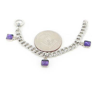 Featuring a sterling silver chain link bracelet with 5 amethyst charm dangles.