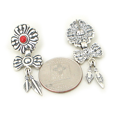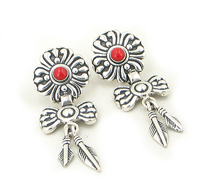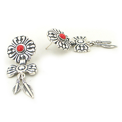Featuring a beautiful pair of sterling silver bow-tied flower earrings with sterling silver dangles & coral studs.