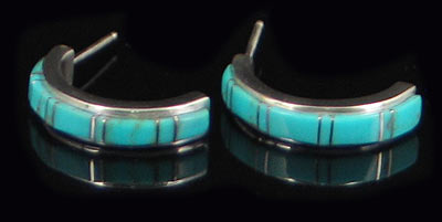 Item Description: Featuring a gorgeous pair of sterling silver Arc Earrings, handcrafted and precision inlaid with genuine high quality turquoise & fiery white created opals. They have a length of 20mm and a width of 4.5 mm. Good Luck and Happy Bidding! For more details please, see box above our company logo.