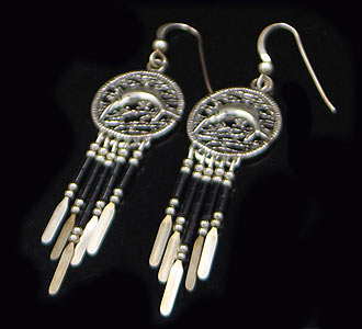 Item Description: Featuring a pair of .925 sterling silver earrings decorated with genuine onyx heishi. The top portion is a unique depiction of a swordfish jumping in the water. Good Luck & Happy Bidding! For more details please, see box above our company logo.
