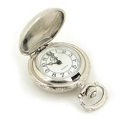 Length: 1=5/16" (39mm) Width: 1-1/16" (27mm) Metal: Stainless Steel Stone: N/A Style: Lady's Pocket Watch