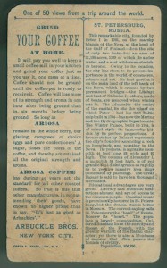 Original Arbuckle coffee chromo card showing scenes from Saint Petersburg. The size is 7.5x12.5cm (3x4.9").