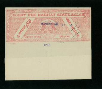 INDIA BHAGHAT STATE TYPE 167a 1R STAMP PAPER REVENUE
