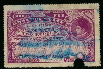INDIA GWALIOR STATE 2Rs COURT FEE. I have a huge collection of Indian Revenues and Court Fees but since i don't know the current prices, i use a catalogue of 1983.