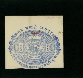 INDIA JAIPUR KOTPULTI OVERPRINT 20R STAMP PAPER REVENUE