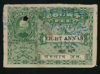INDIA JATH STATE 8As REVENUE. I have a huge collection of Indian Revenues and Court Fees but since i don't know the current prices, i use a catalogue of 1983.