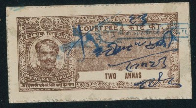 INDIA MEWAR UDAIPUR STATE 2As COURT FEE. I have a huge collection of Indian Revenues and Court Fees but since i don't know the current prices, i use a catalogue of 1983.