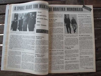 Original Epikaira magazine with an article concerning the political leaders of Cyprus Digenis Grivas and Arch. Makarios. The size is 24x33cm.