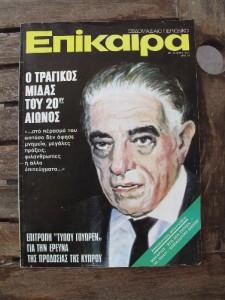 Original Epikaira magazine with an article concerning the death of Onassis and the political leader of Cyprus Arch. Makarios. The size is 24x33cm.