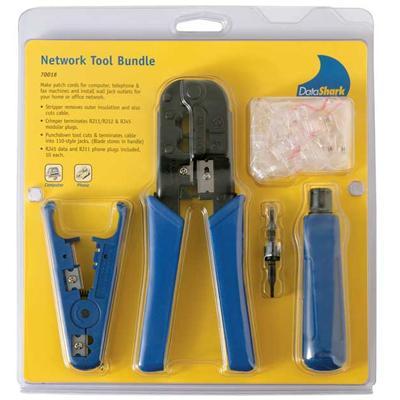 DataShark Network Tool Bundle... Complete tool bundle for making patch new patch cords or to terminate 110 jacks or patch panels. Also includes 10 RJ45 and 10 RJ11 modular plugs for solid, round cable. Kit contains Universal Cable Stripper (70003), Modular Plug Crimper for RJ45 & RJ11/12 (70005), 110 Punchdown Tool (70012).