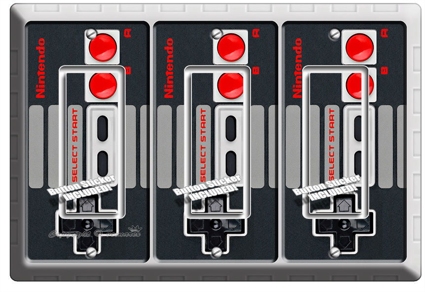 VIDEO GAME CONTROLLER OLD NINTENDO NES TRIPLE GFCI LIGHT SWITCH COVER WALL DECOR