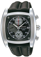 Seiko SNAB03 Men's Stainless Steel Alarm Chronograph Black Dial Leather Strap, Men's Watch