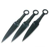 About This Item Set comes with three knives that are approximately 6-1/2 inches long. Made of stainless steel with a black matte finish and balanced for throwing. Complete with triple pocket durable nylon sheath with hook and loop closure to hold knives firmly. Disclaimer: Knives will not be sold to minors and knives cannot be shipped to California. All weapons are for demonstration or decorative purposes only. If used for demonstration, expert care and supervision should be exercised.