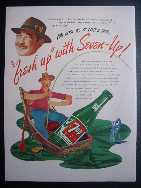 1946 7-Up Seven-Up Fishing Fisherman Vintage '40s Print Ad