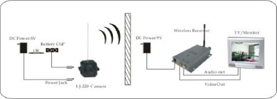WIRELESS COLOR HIDDEN CAMERA WHICH WILL WORK WITH THE SUPPLIED AC ADAPTER OR 9V BATTERY