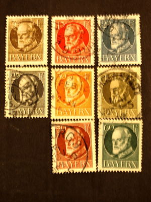 Bavaria Bayern 1914 Perf SG 173a to 187a Used LH Lot of 8 Stamps Lot #4