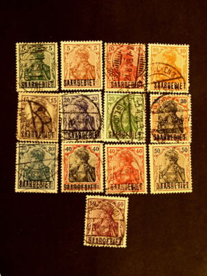 Saar Saargebiet 1920 Overprints on Germany Stamps SG 32 to 44 Used