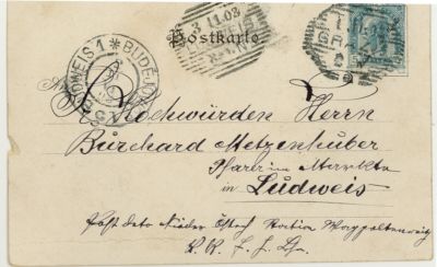Postmark: Graz, Budejovice, Budweis