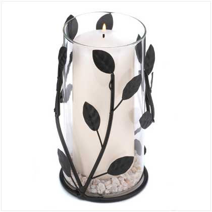 Instantly cast an entrancing aura with this alluring hurricane lantern! Simply add a pretty pillar candle to create a captivating centerpiece, and set your evening aglow. Weight 1.2 lbs. Glass and metal. Rocks included. Candle not included. 4?" diameter x 7¬" high.