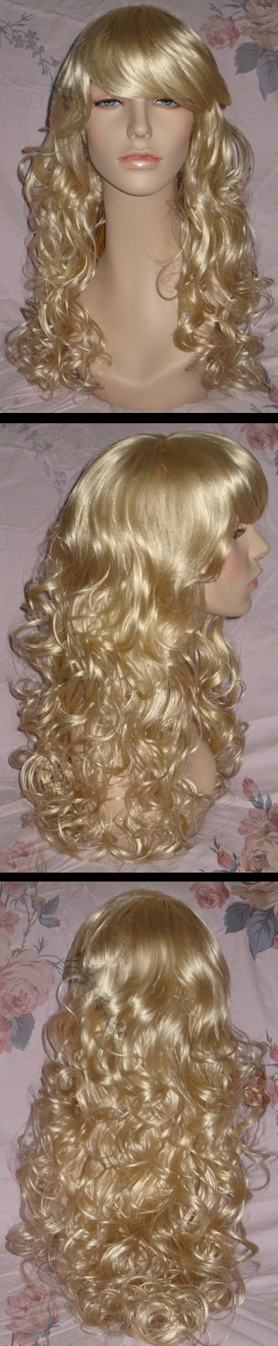 Long Light Blonde Curly Women's Wig with Fringe From wiWigs