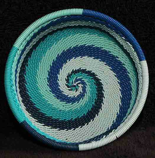 Handmade African Zulu Telephone Wire Basket Bowl - Tuna Can - Blue Waves