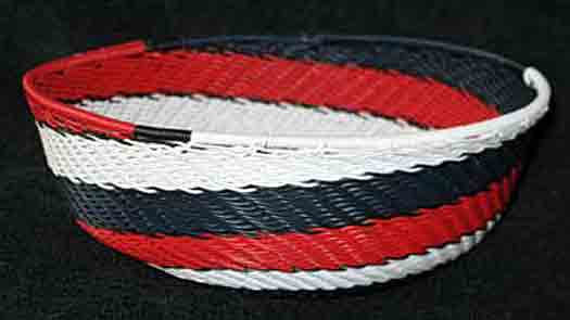 Telephone baskets are very popular and hard to find. Each one is unique. They are solidly made and heavy. This basket is made of recycled telephone wire and has vivid colors. It has a lovely shape. Marvel at the talent used to make this true work of usable art. Wash with warm soapy water! A very pretty bowl-shaped basket! It is also wonderfully crafted. Compare the quality and even technique of our telephone wire bowls to others. Extraordinary!