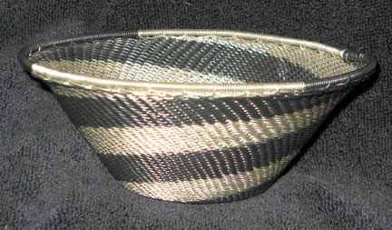 Marvel at the talent used to make this true work of usable art. Wash with warm soapy water! A very pretty bowl-shaped basket! It is also wonderfully crafted. Compare the quality and even technique of our telephone wire bowls to others. Extraordinary!