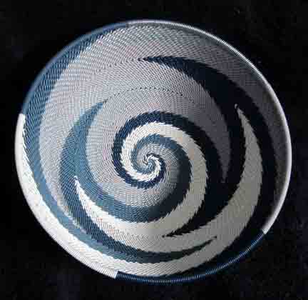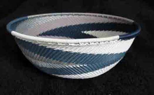 Snowy Winter Sky Handmade African Zulu Telephone Wire Basket Bowl MED
