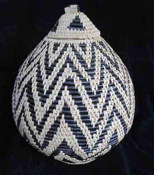 Small traditional Zulu herb containers are used to hold culinary and medicinal herbs. Baskets made for holding herbs have a looser weave to allow the herbs to dry, while those made to hold fluids have a tighter weave. Zulu beer is made by allowing maize (corn) to soak in water in a covered basket until it is fermented. The beer is then wrung through a flexible basket and the grain is then given to the domesticated guinea hens. It is quite funny to watch the drunken hens wobble around. oh, and by the way, the beer is very tasty too.