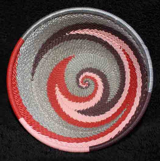 Telephone baskets are very popular and hard to find. Each one is unique. They are solidly made and heavy. This basket is made of recycled telephone wire and has vivid colors. It has a lovely shape. Marvel at the talent used to make this true work of usable art. Wash with warm soapy water! A very pretty bowl-shaped basket! It is also wonderfully crafted. Compare the quality and even technique of our telephone wire bowls to others. Extraordinary!