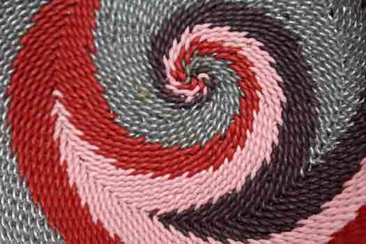 "The telephone wire basket is a relatively recent craft development which reflects the ingenuity of craftspeople. Brightly coloured telephone wires are used to great creative effect, decoratively covering objects such as bottles and walking sticks, or made into plates and baskets."